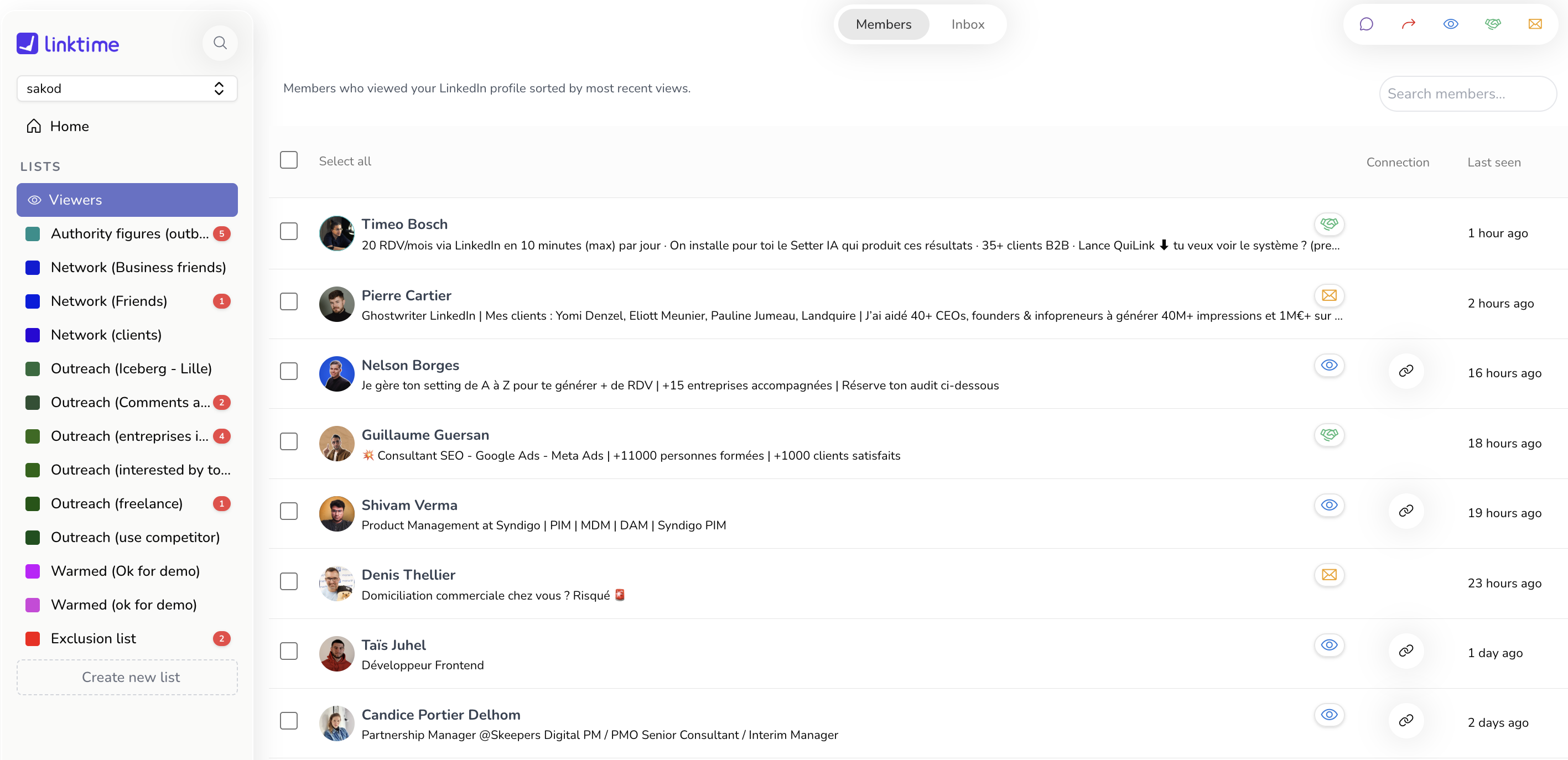 → Add to a specific list in one click either directly from LinkedIn or linktime